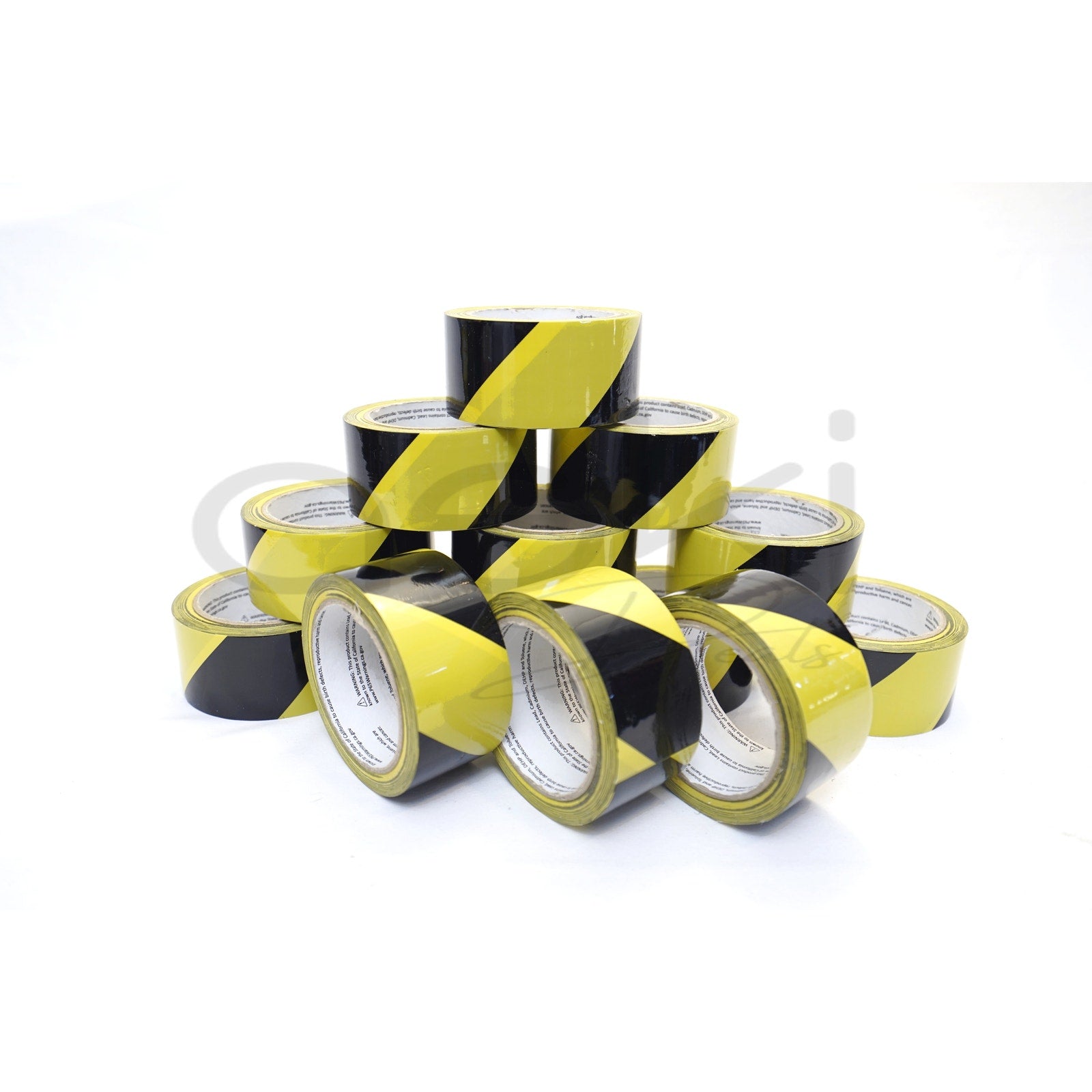 1 roll of 2 inch x 18 yard yellow/black hazard stripe tape (select quantity if buying multiple)